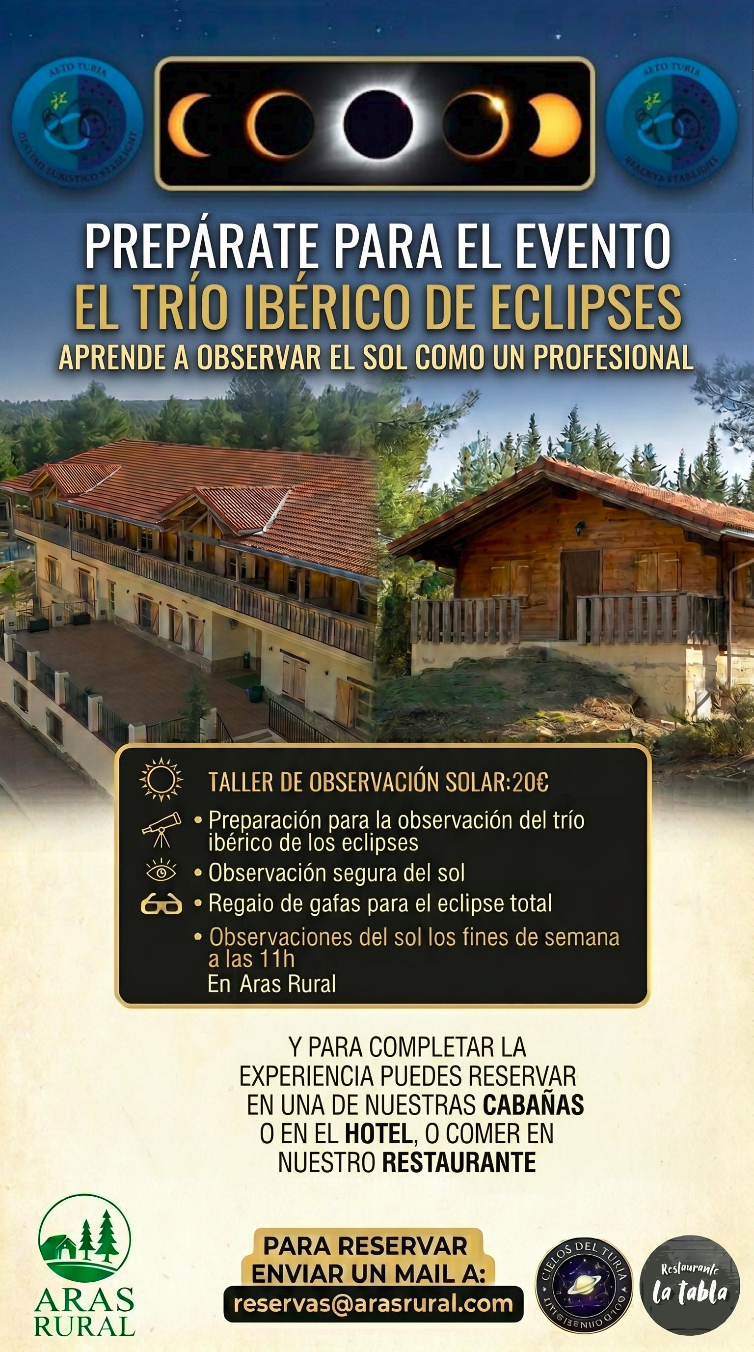 Estas son algunas de las actividades formativas/informativas sobre el eclipse solar que ofrecemos desde Aras de los Olmos.