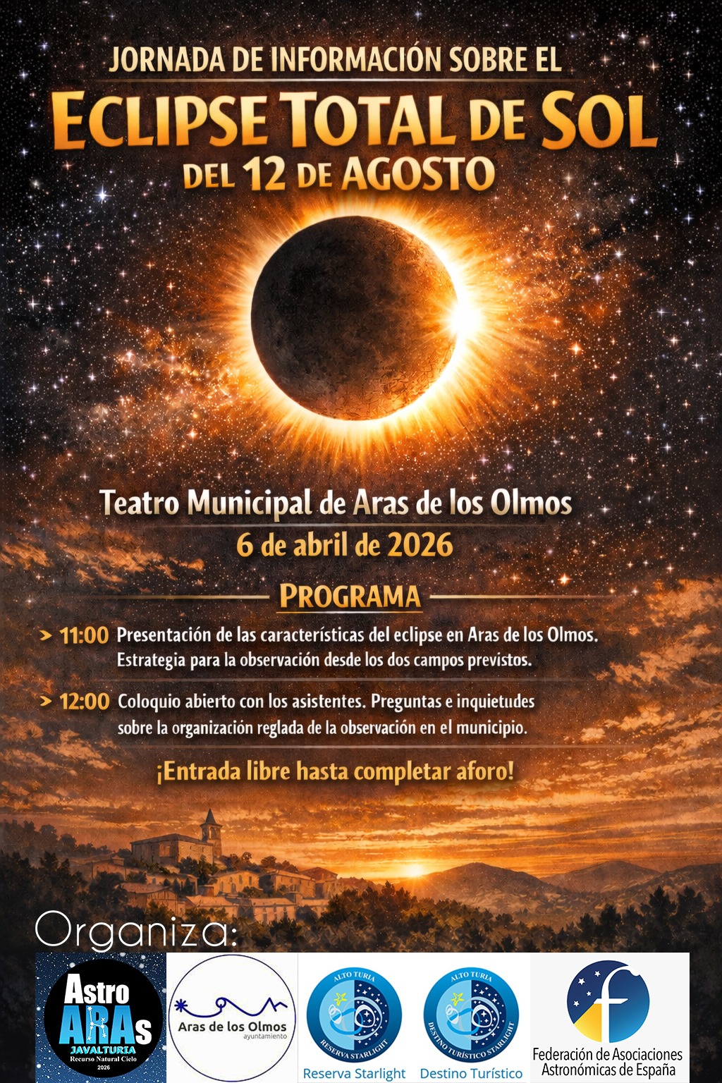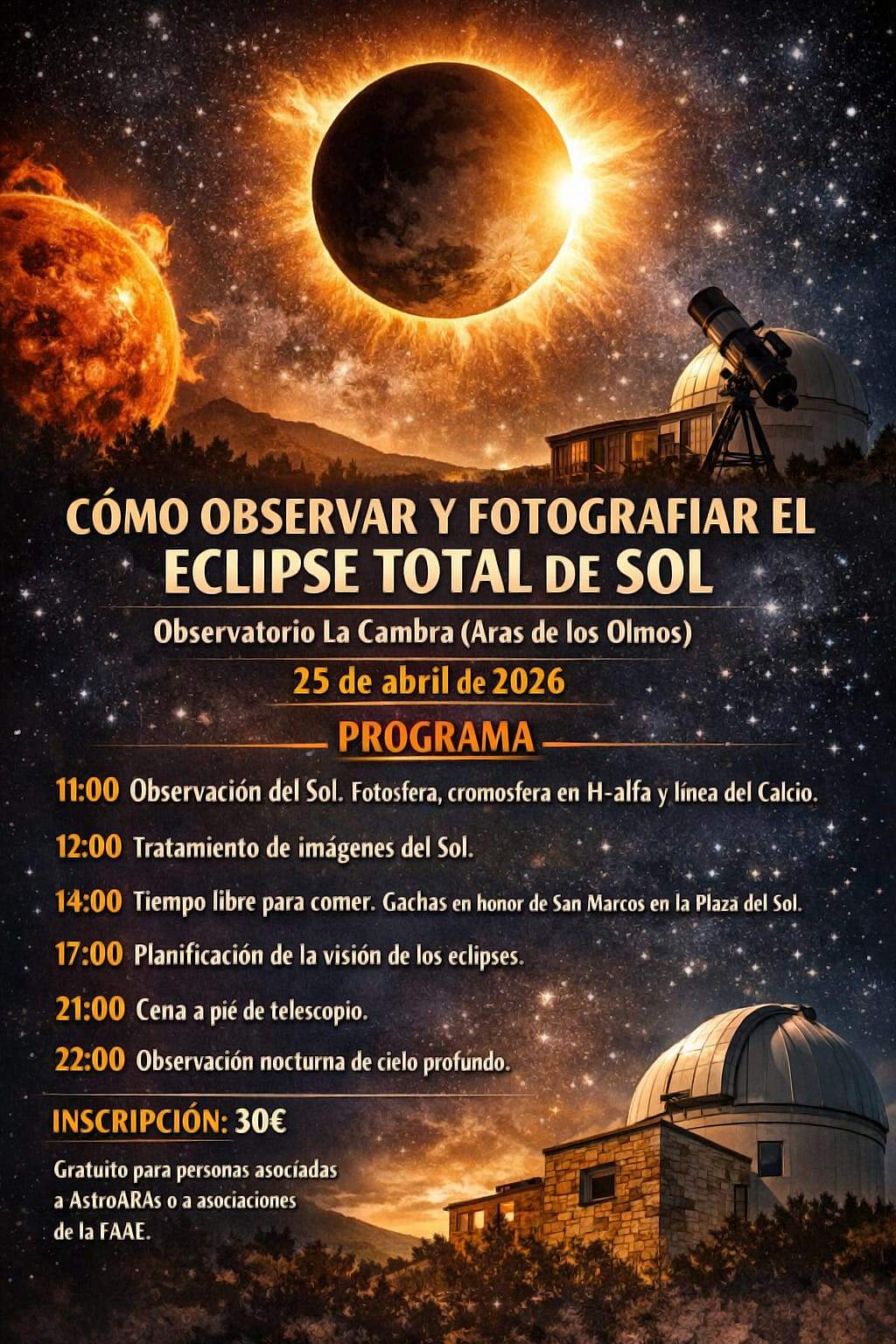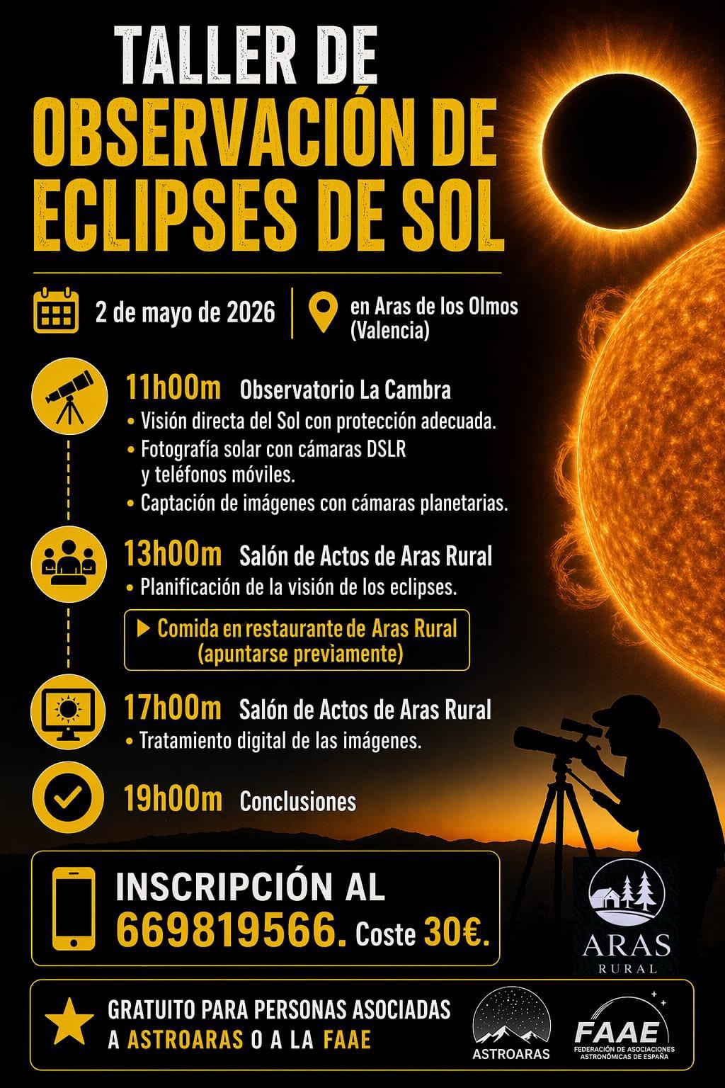 Estas son algunas de las actividades formativas/informativas sobre el eclipse solar que ofrecemos desde Aras de los Olmos.