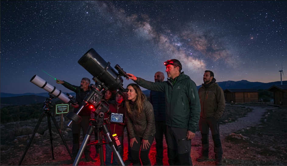 Plan 1: Observación Astronómica en las proximidades de Aras Rural. Una experiencia perfecta para disfrutar del cielo nocturno y las estrellas en grupo con instrumentación profesional.